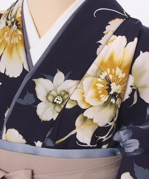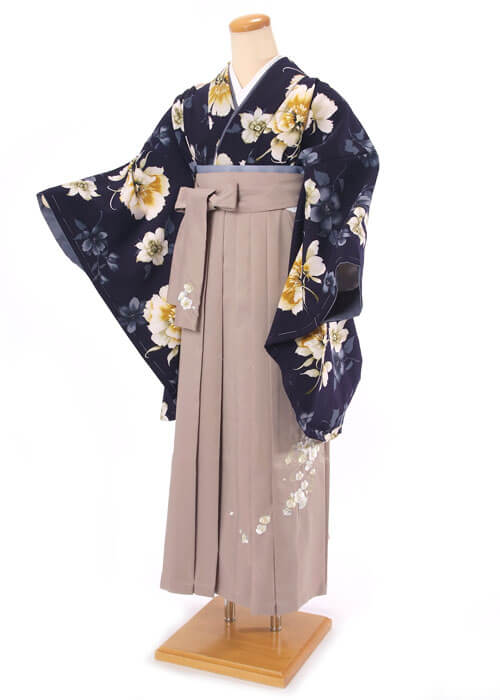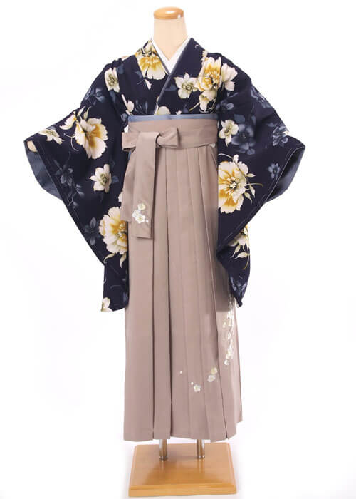 紺系着物&モカベージュ系 袴スタイル