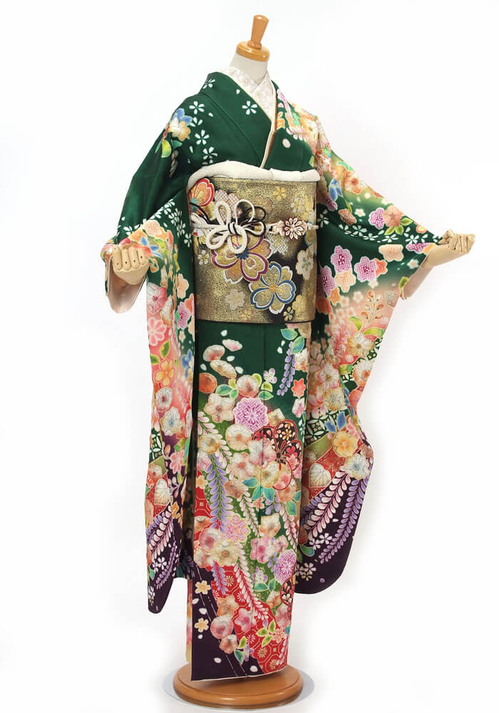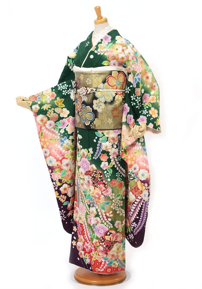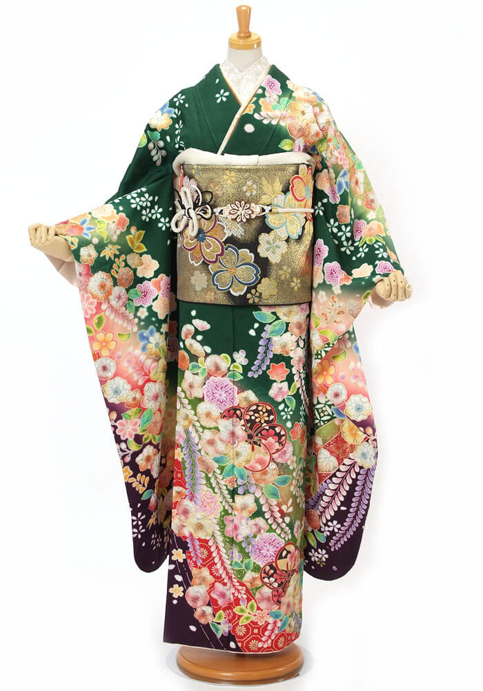 振袖《緑×古典》辻が花模様|成人式レンタル