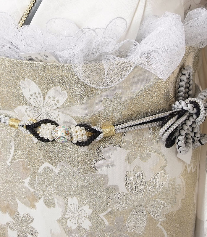帯揚げはシルバーのレースデザインで