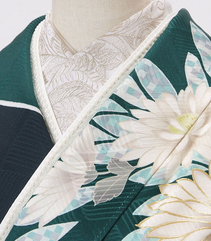 重ね衿は、淡いグリーン系と